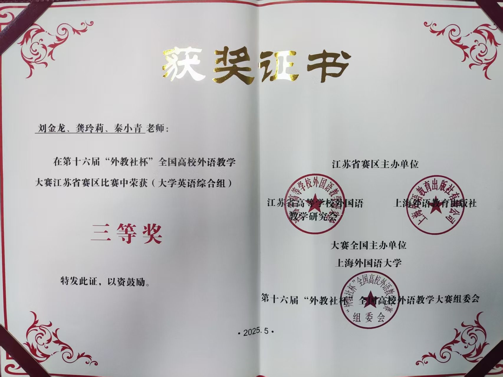 我校教师团队在第十六届“外教社杯”江苏省赛区决赛中取得好成绩