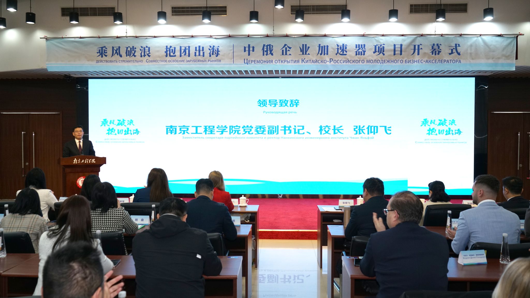 12月4日上午,2024中俄企业加速器交流项目开幕式在我校至勤楼·行政中心二楼多功能厅举行。党委副书记、校长张仰飞,南京市外办副主任孙曼,共青团江苏省委兼职副书记、南京苏青科技集团有限公司董事长刘伯敏,共青团江苏省委统战部副部长徐龙,俄罗斯联邦青年事务局代表安吉丽娜·科瓦列娃一行出席活动。我校党委统战部、国际合作与交流处、创新创业学院等部门负责人及大学生创业园孵化企业代表和创业见习学生等90余人参加此次活...
