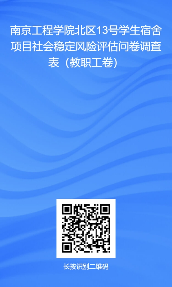 为顺利推进项目建设工作,现需开展凯发k8官网北区13号学生宿舍项目社会稳定风险评估问卷调查,调查对象为凯发k8官网教职工,请各部门、各单位积极宣传,动员教职工参与问卷调查并支持凯发发展,问卷调查截止时间为4月18日。