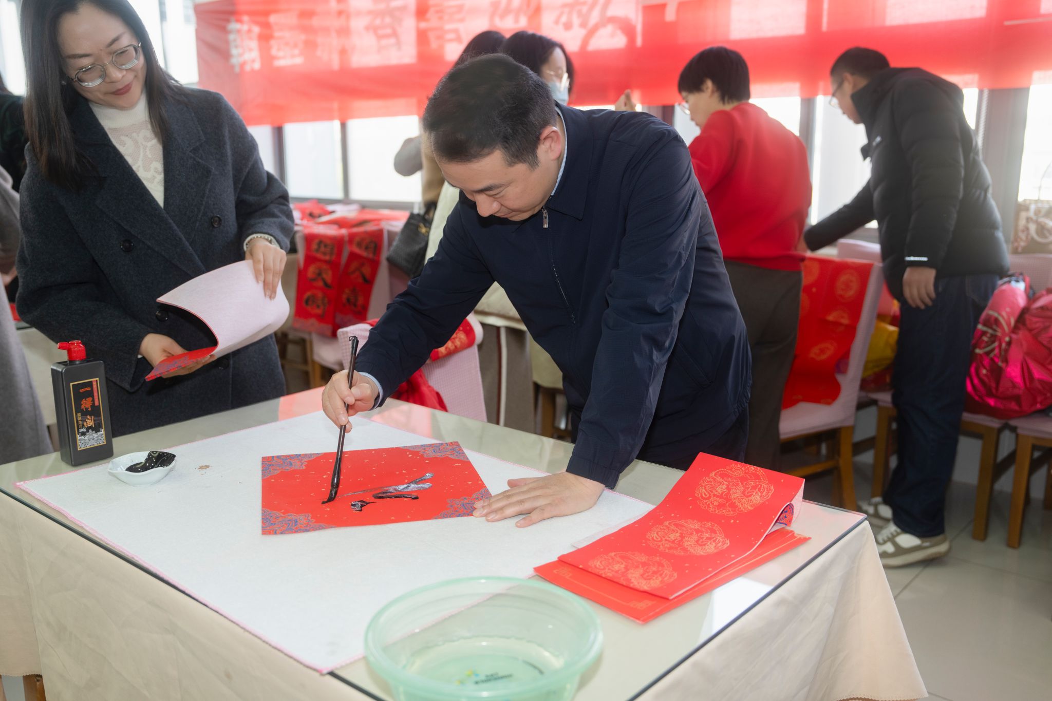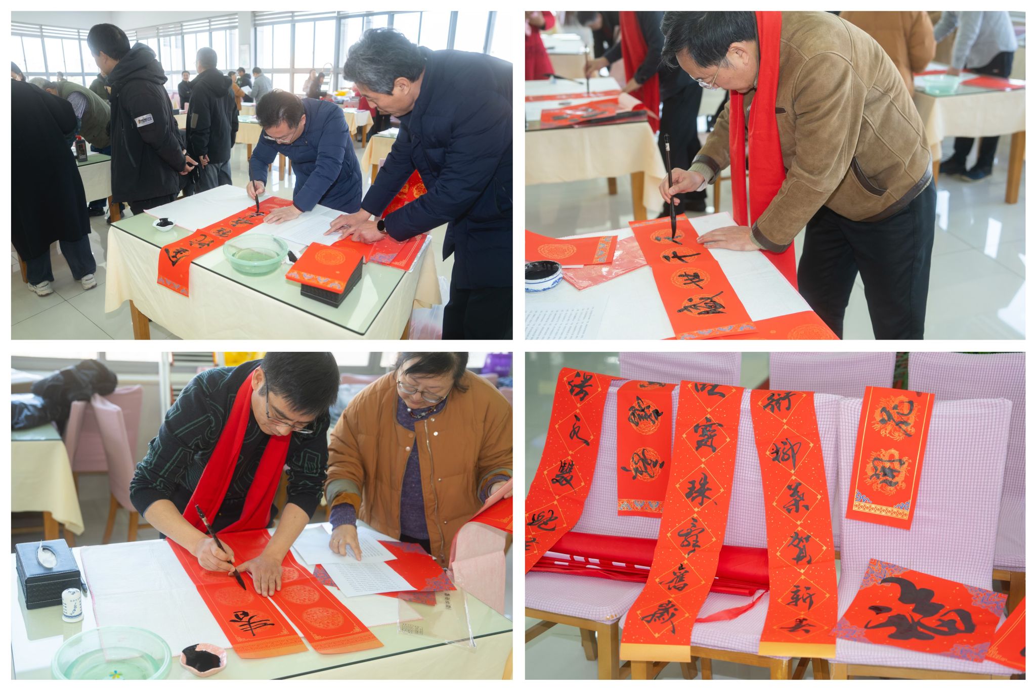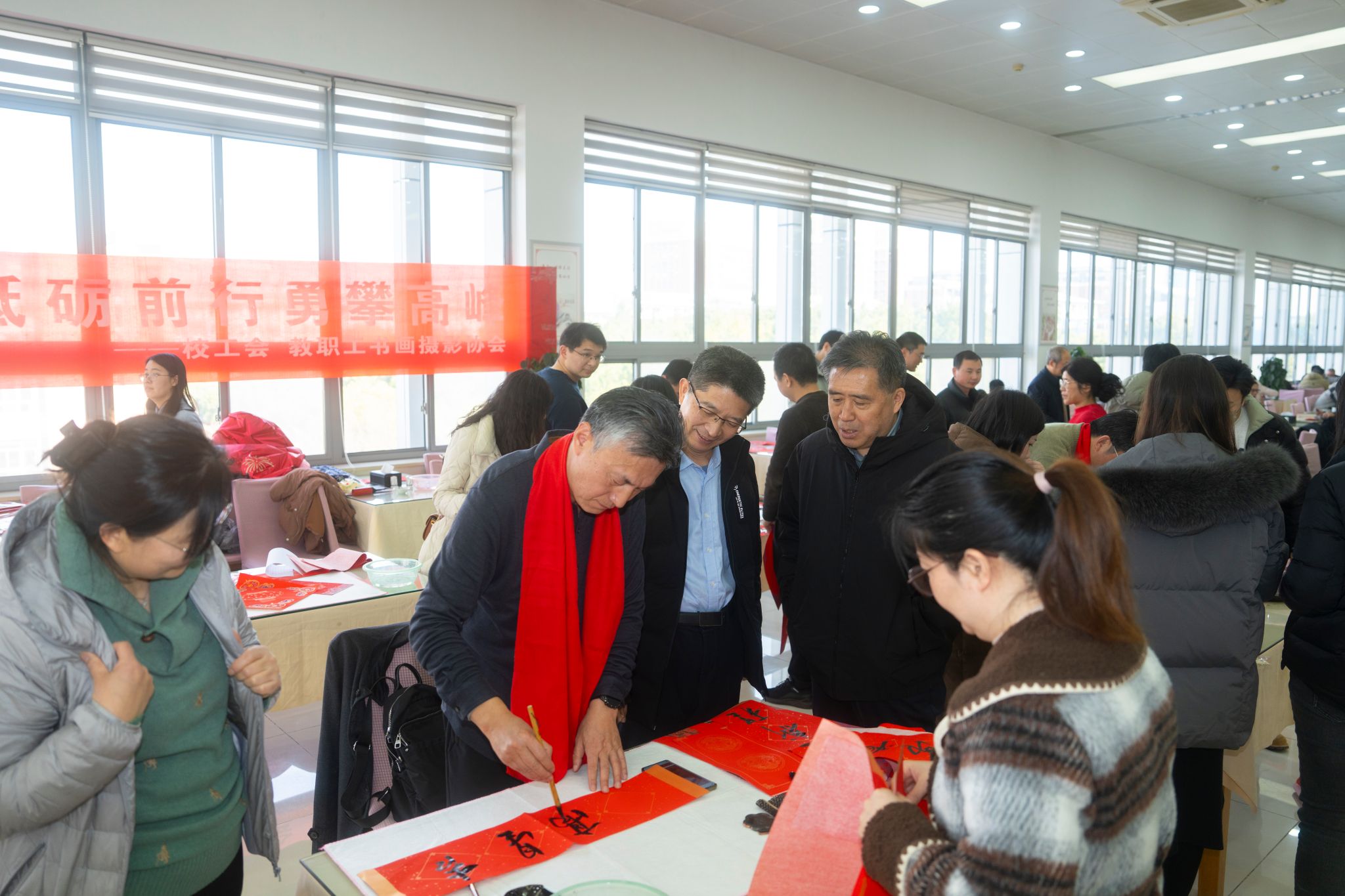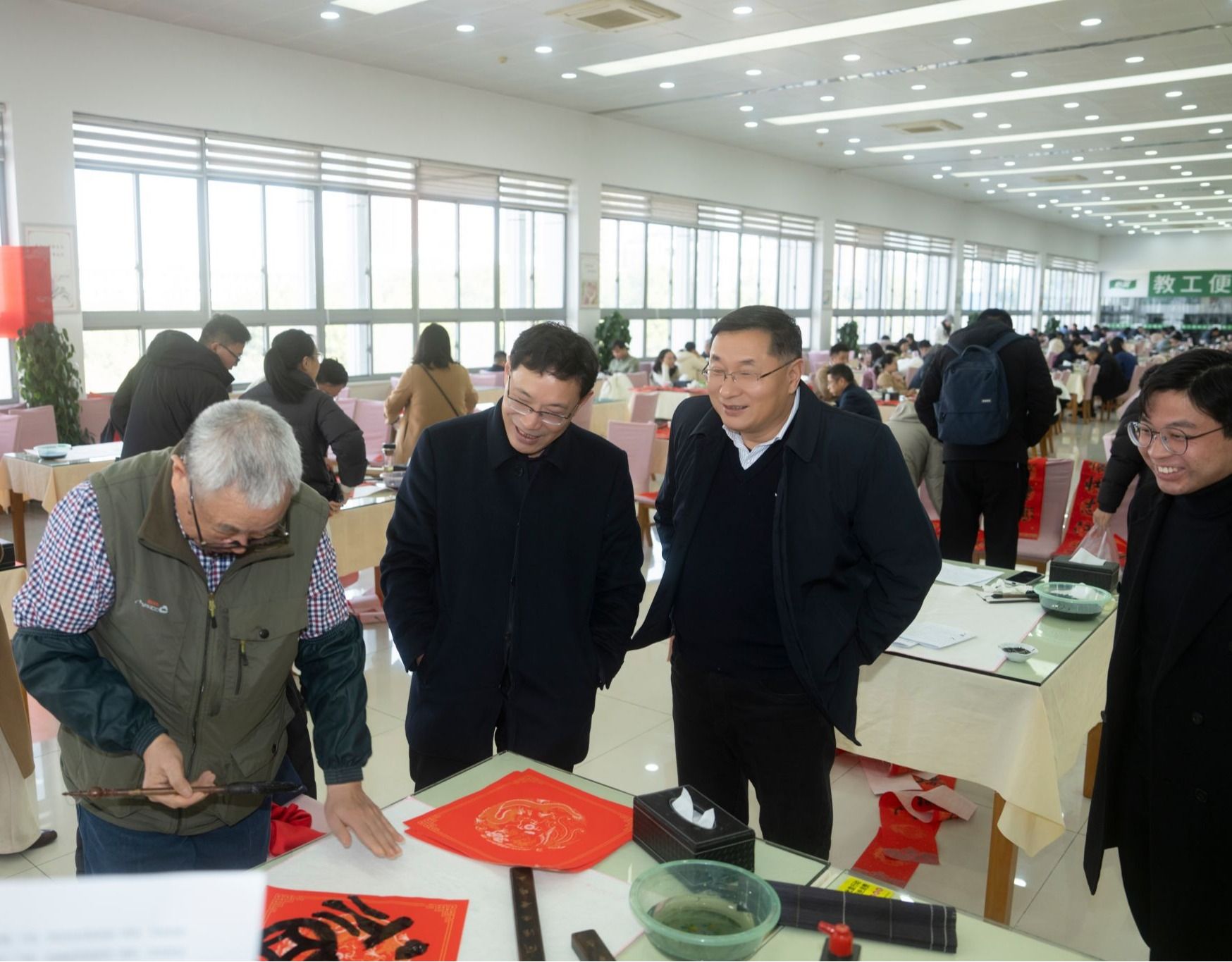 福启新岁,墨韵迎春。新春佳节将至,为进一步弘扬中华优秀传统文化,推动一流校园文化工程建设,1月8日中午,由校工会主办、教职工书画摄影协会承办的“翰墨飘香喜迎新年 砥砺前行勇攀高峰”迎新春写春联送祝福活动在东区教工餐厅拉开帷幕。党委书记孙爱武,党委副书记、校长张仰飞等校领导来到现场参与活动,并为广大教职工送去新春祝福。