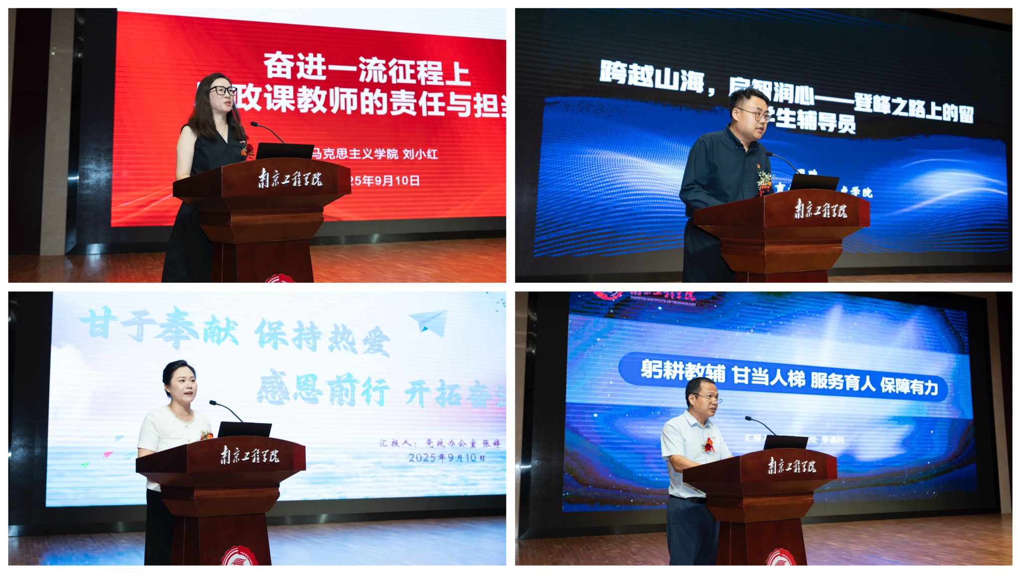 在热烈的掌声中,校领导向一年来在党建思政、教书育人、科技创新等领域取得优异成绩的教师代表颁发证书。他们中既有爱岗敬业、深受学生喜爱的“模范教师”以及凭借卓越教学能力在各类大赛中斩获佳绩的“教学名师”;又有长期深耕教学一线,以精益求精的态度打磨教学工作的“教学质量标兵”以及在科技领域积极探索、成果丰硕的“科技工作先进个人”;还有默默陪伴学生成长、为学生青春赋能的优秀辅导员、班主任以及共青团干部。