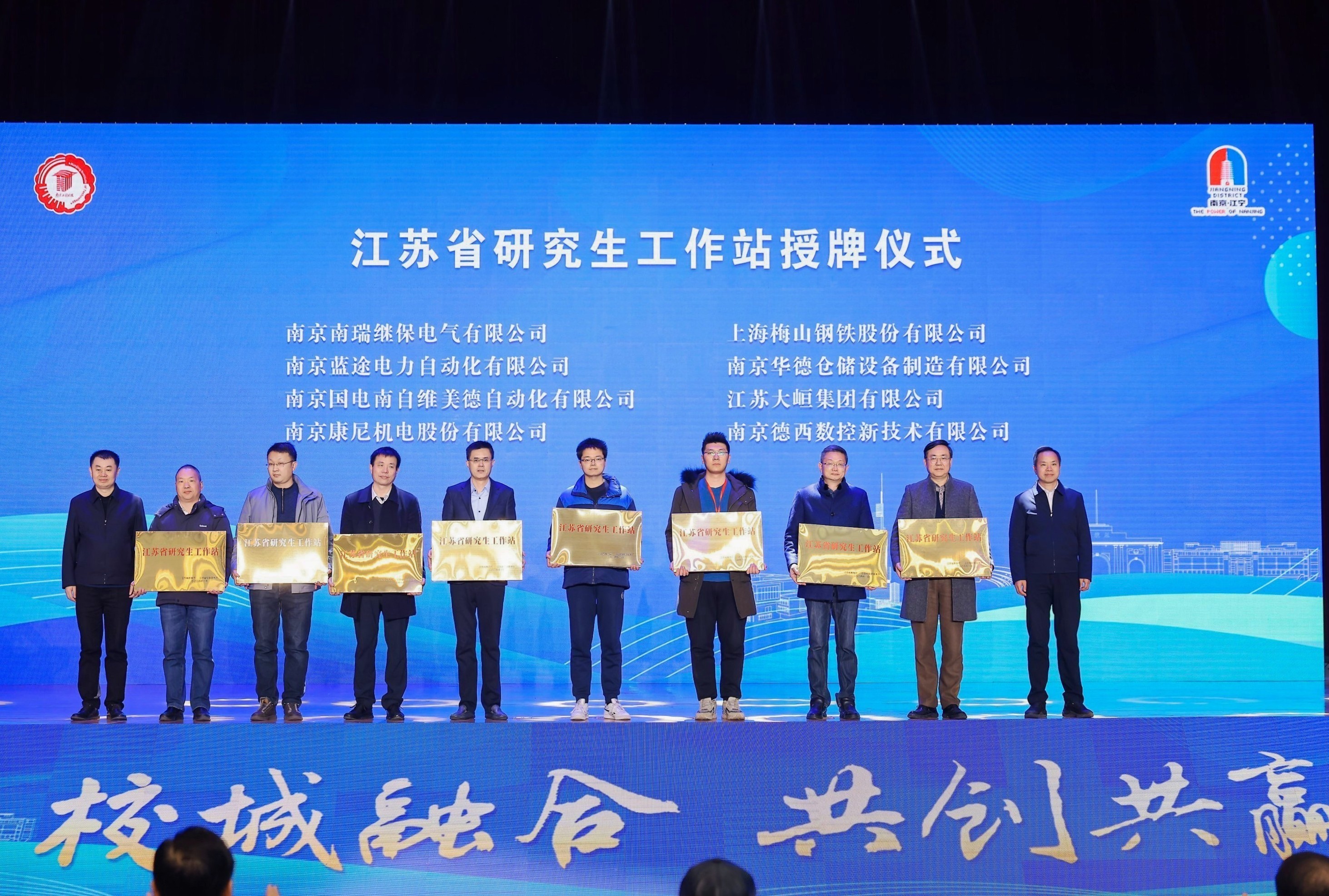 会上还发布了南工程数字人IP形象,成立了校城科技发展联盟,进行了科技攻关项目对接签约,为产业教授颁发聘书,并为一批江苏省研究生工作站、产学研合作基地、学生就业基地、实践教育基地授牌。