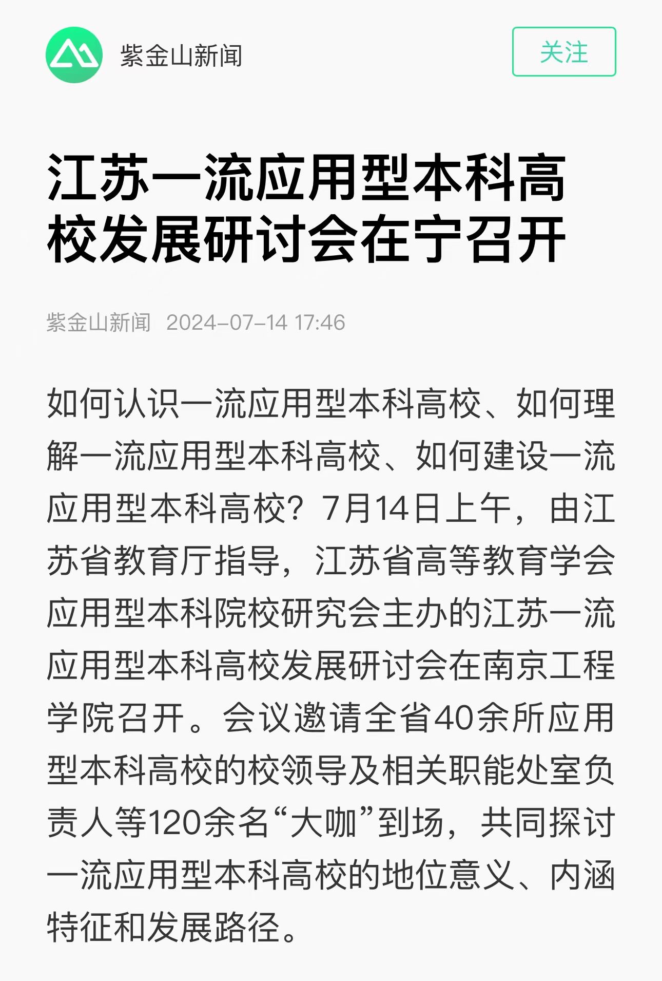 应用型本科高校在高等教育体系中起着“承上启下”的重要作用。今年初,江苏正式启动一流应用型本科高校建设单位计划,并遴选立项首批6所高校作为建设单位。本次研讨会旨在促进应用型高校间的互学互鉴、交流合作。